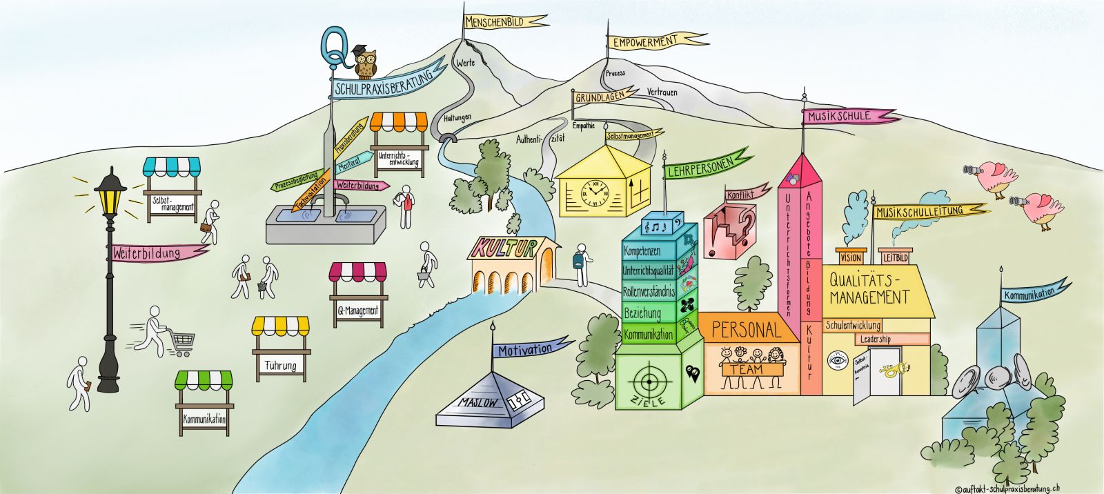 Wir unterstützen Musikschulen ganzheitlich, indem wir das Qualitätsbewusstsein stärken und pädagogisches Wissen vermitteln. Wichtig sind uns Wertschätzung, die Wahrnehmung von Bedürfnissen und die Verwirklichung der vorhandenen Ressourcen.